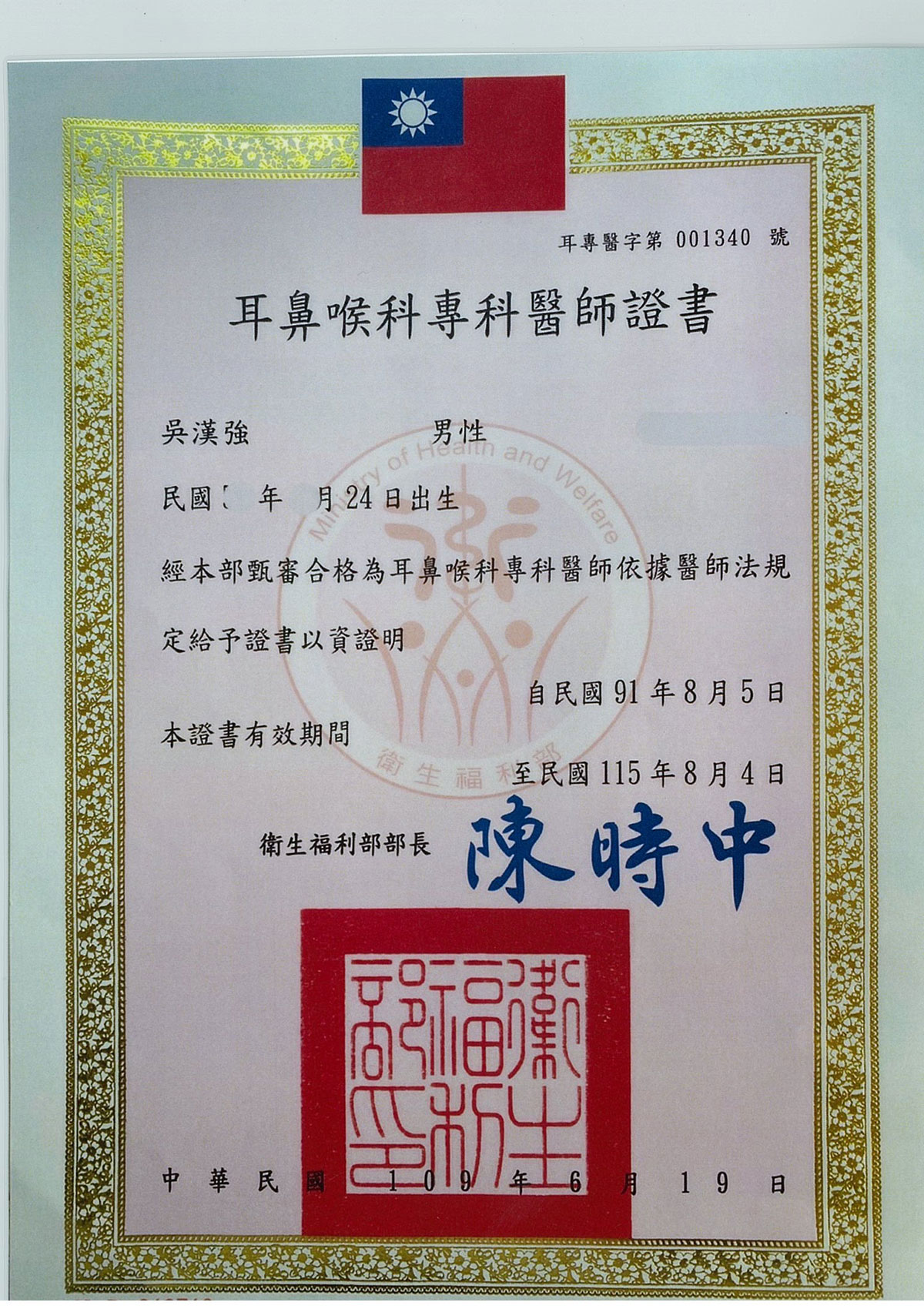 - 中華民國耳鼻喉科專科醫師